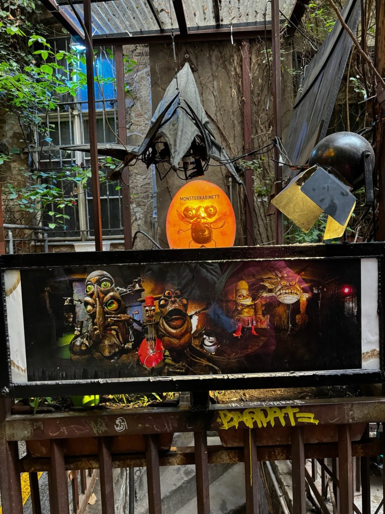 Monsterkabinett (animatronics show!)This was at the musical instrument museum!Ground water pumping pipes for construction German parliament, sadly we didn’t get a dome tourOdd souvenirs Berlin Aquarium!Interesting art exhibit (the light bulbs move up and down)Our collection of tickets